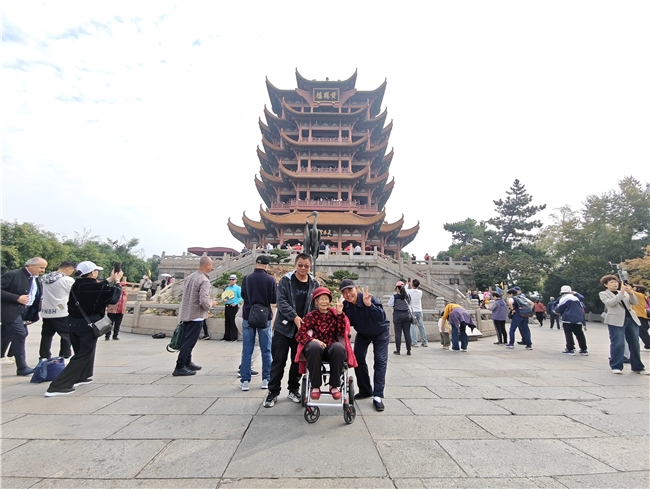 银发族晚年生活不设限:90后孙子带百岁奶奶登黄鹤楼过重阳